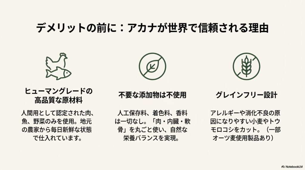 では、あえてアカナを選ぶメリットはどこにあるのでしょうか?