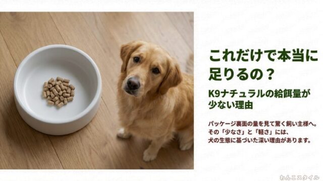 フードの選び方・比較 K9ナチュラルの量は少ない?栄養の秘密と正しい給餌量を徹底解説 2026-02-14 すだこ 愛犬の健康を考えて、評判の良いK9ナチュラルを検討中の方も多いのではないでしょうか。 しかし、いざパッケージ裏面の給餌量を見てみると …