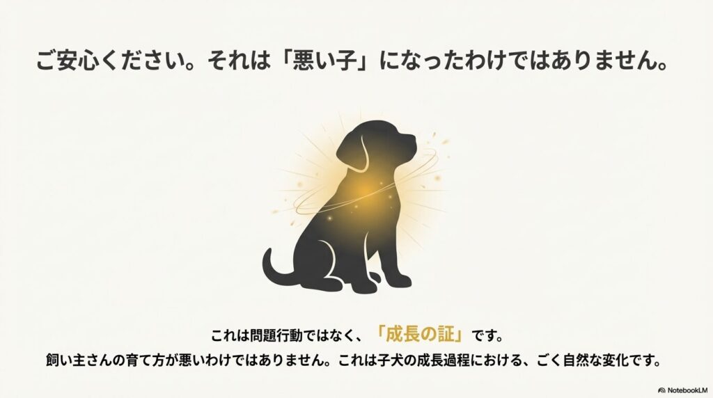 「今まであんなに素直だったのに、急にどうしちゃったんだろう?」と不安に思う必要はありません。この時期の子犬の変化には、ちゃんとした生物学的な理由があります。