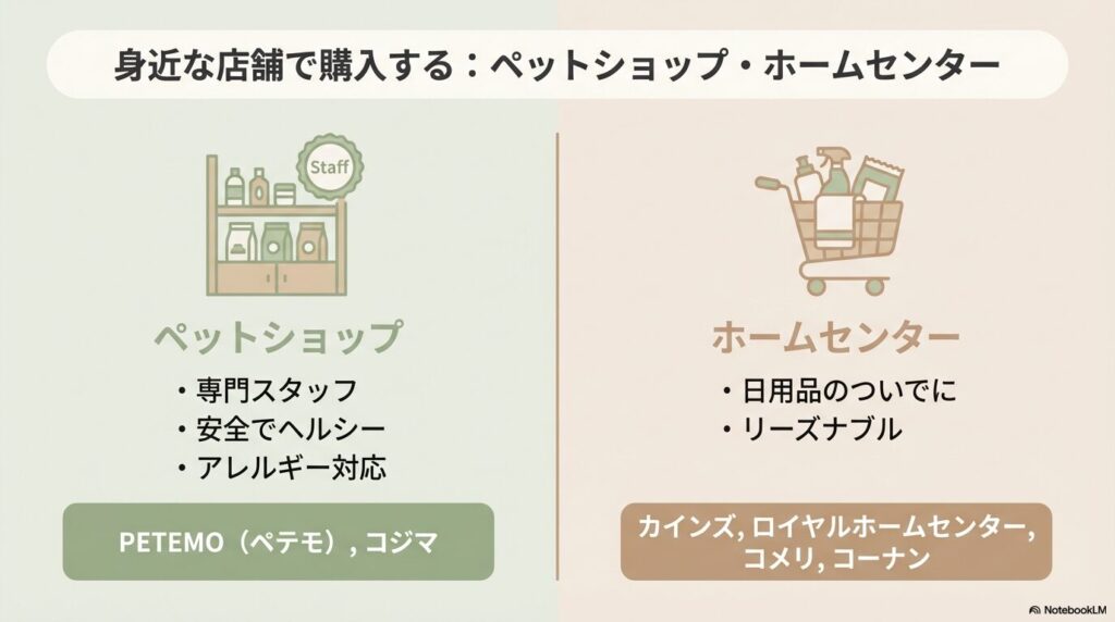 最近では、ペットショップだけでなく、ホームセンターやオンラインショップでも手軽に手に入るようになり、選択肢が増えています。