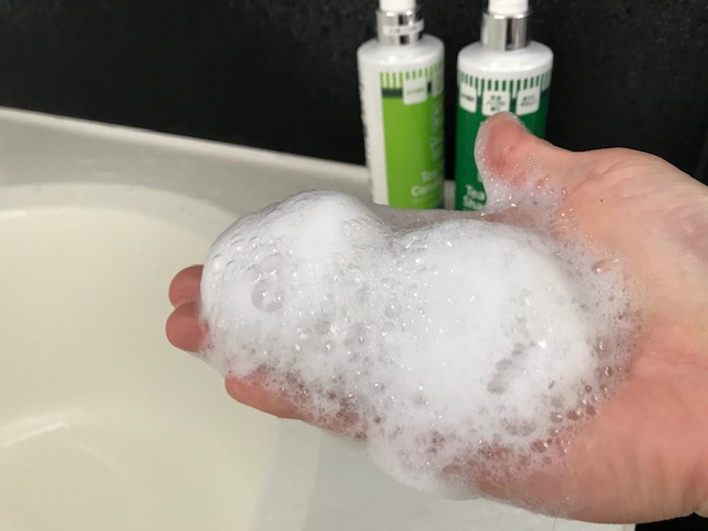 少量での泡立ちも良く、ベタつきが落ちてサラサラに仕上がりました。