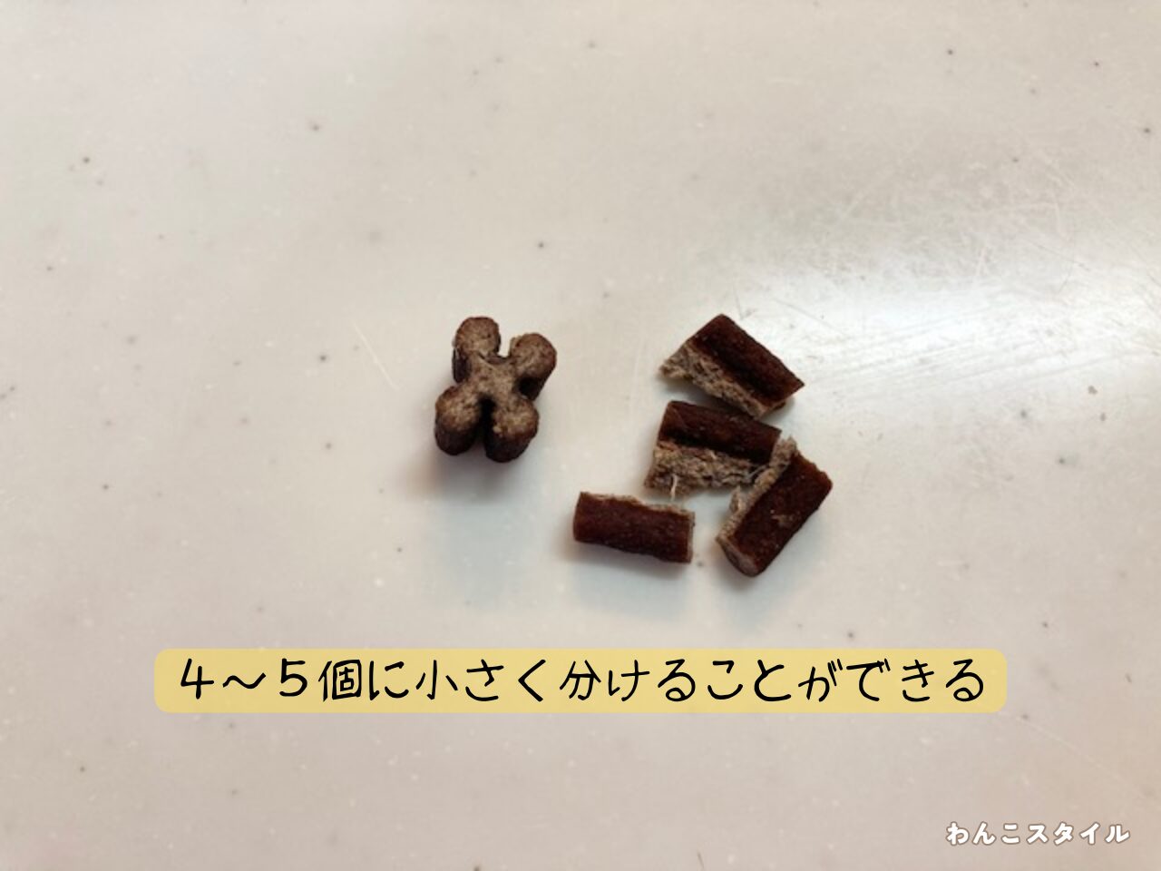 細かくすれば、トレーニングやドッグフードのトッピングにも使用できますよ。