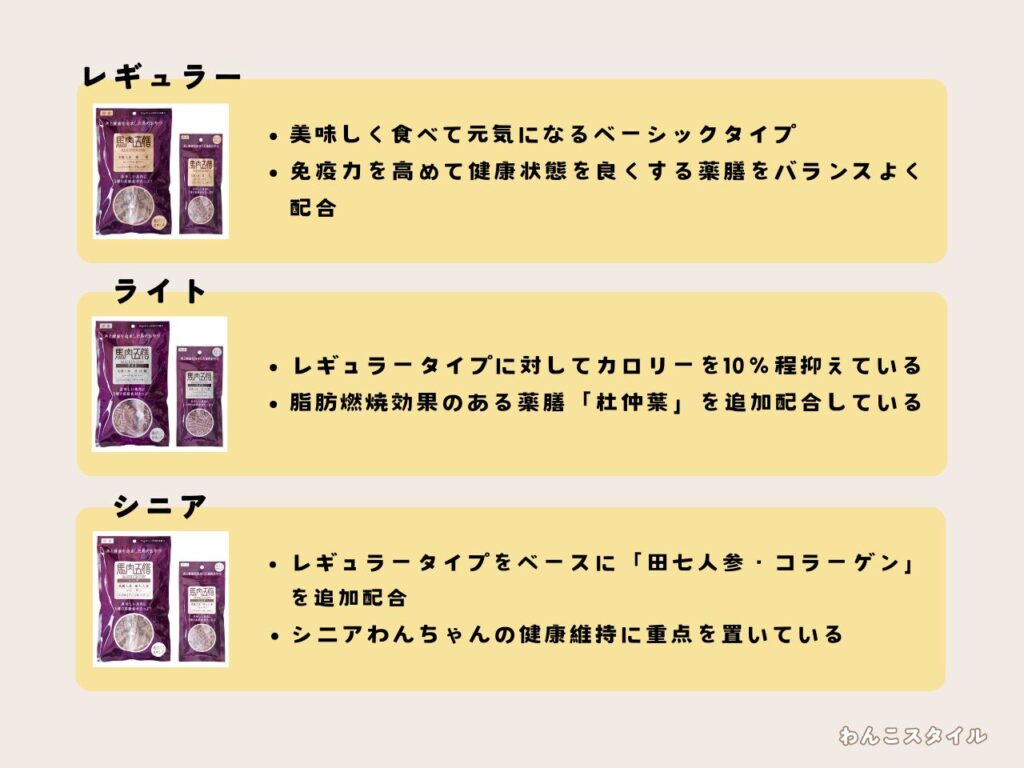 馬肉五膳以外のおやつも付属するので色々試せますよ。