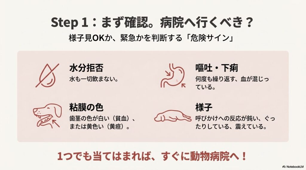 愛犬がご飯を食べないとき、最初にすべきことは「病院へ行くべきか、様子を見てもいいか」の判断です。