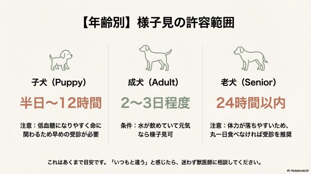 判断に迷ったときは、ライフステージごとの「様子見の許容範囲」を参考にしてください。