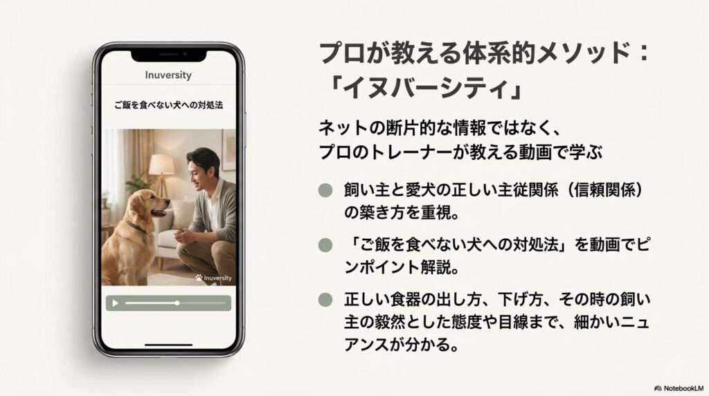 実はイヌバーシティには、ピンポイントで「ご飯を食べない犬への対処法」を解説したコンテンツが含まれています。