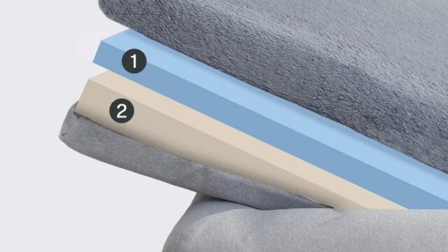 1. ベッドの上層には低反発フォームを使用しており、愛犬の身体に完璧にフィット。