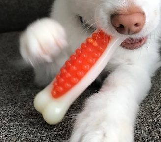 お気に入りで暇さえあればカジカジしています。子犬の頃からのお気に入りで、これが歯の健康に役立っているみたいです。今のところ歯石もなく、歯のトラブルはまったくありません