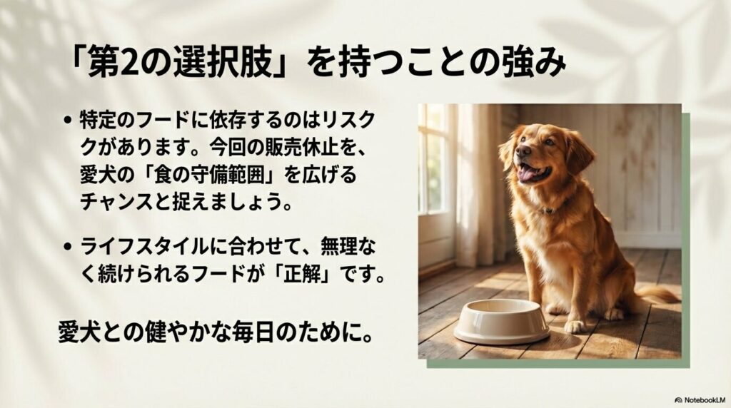 特に輸入フードは入荷不安定になることがあるので、リスク分散として「第2の選択肢」を持っておくことは非常に重要だと感じます。