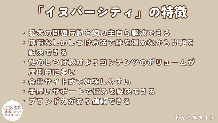 『イヌバーシティ』はどのような犬のしつけ教材となっているのか、内容を以下にまとめました。