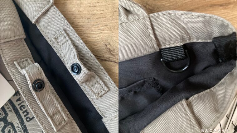 スナップボタン&Dカン付きで多機能