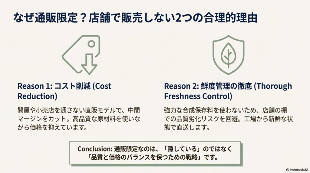 通販限定なのは、「隠している」のではなく「品質と価格のバランスを保つための戦略」なのです。