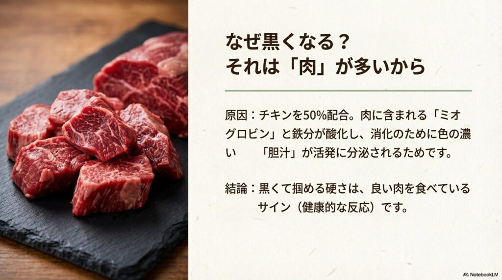 実は自分も愛犬のペコに初めてネルソンズを与えた際、いつもより濃い色の便が出て驚いた経験があります。