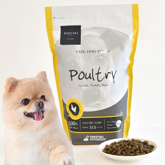 POCHIは、「タンパク質・脂質・カロリー」がちょうどいいバランスで調整されたドッグフードです。