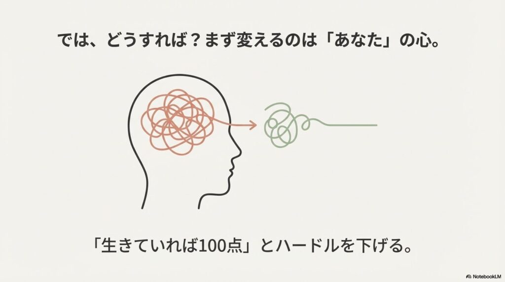 • 「生きていればそれで100点」とハードルを下げる