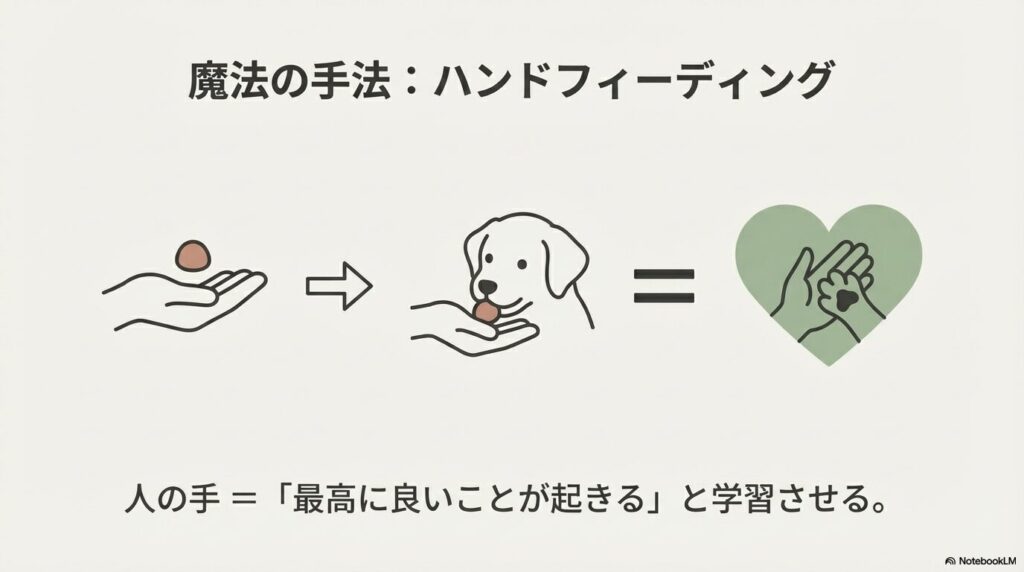 関係修復の特効薬として多くのプロが推奨するのが「ハンドフィーディング」です。手順は以下の通りです。
