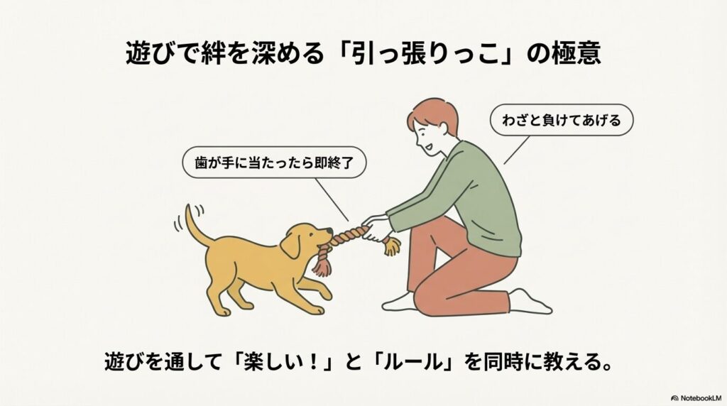 一緒に遊ぶことは、愛情ホルモン「オキシトシン」の分泌を促します。特におすすめなのが「引っ張りっこ」です。