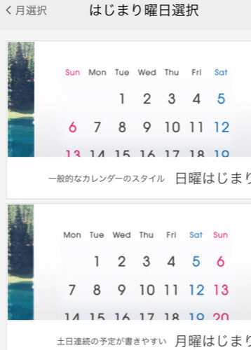 曜日はじまりは、アプリ版・ウェブブラウザ版どちらも