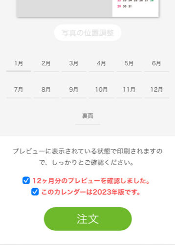 表面にカレンダーのあるデザインを選んだ場合、写真は正方形になります。